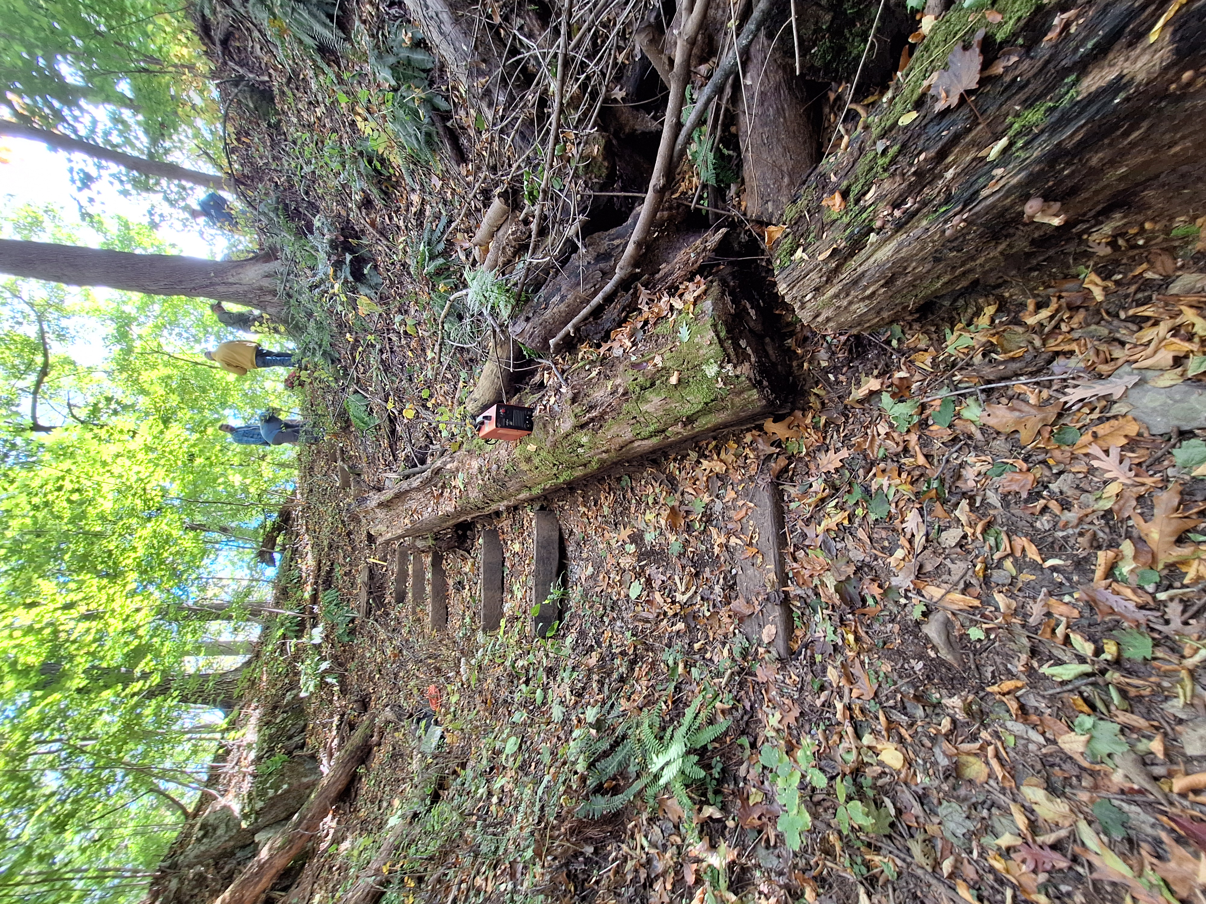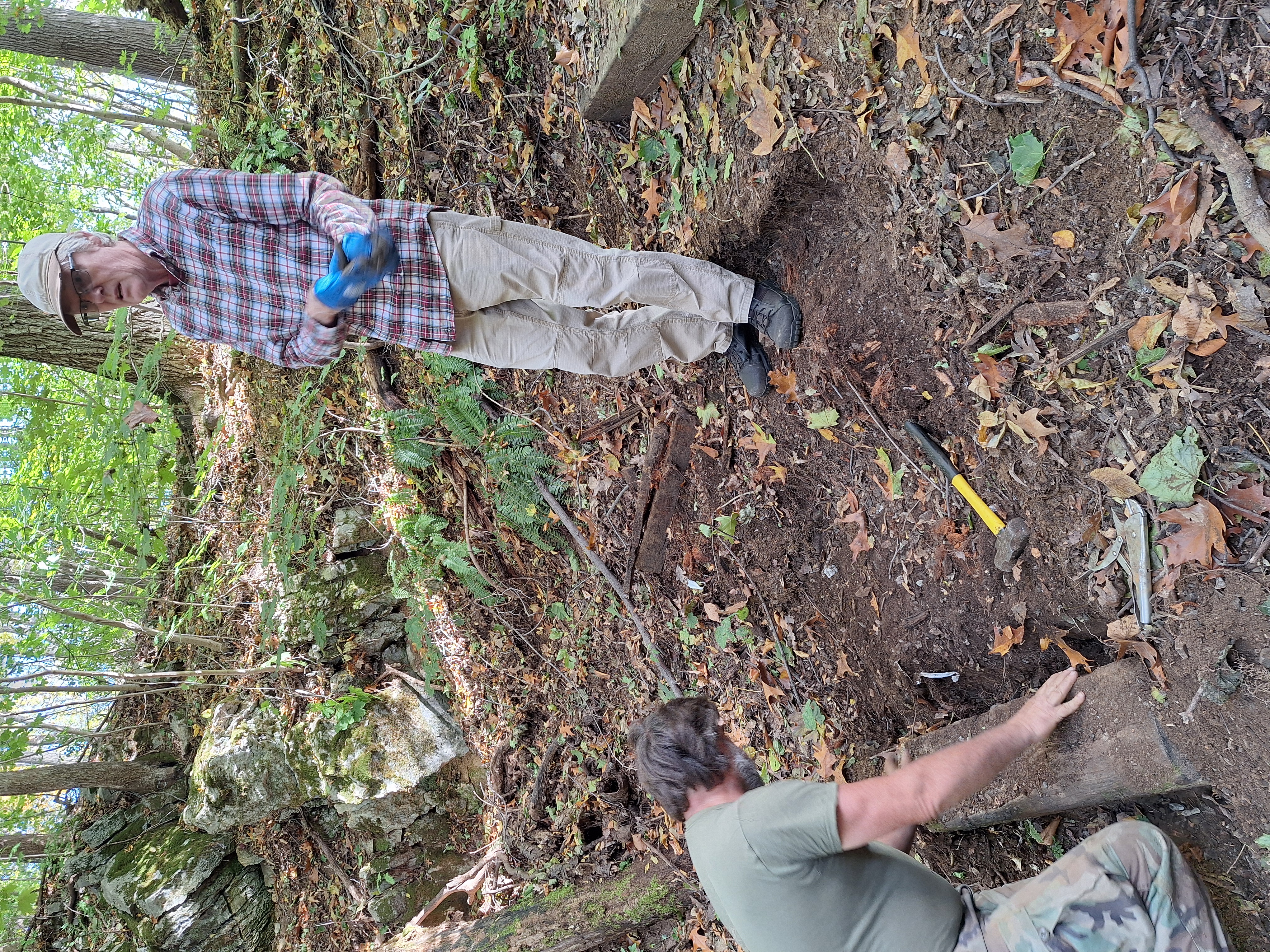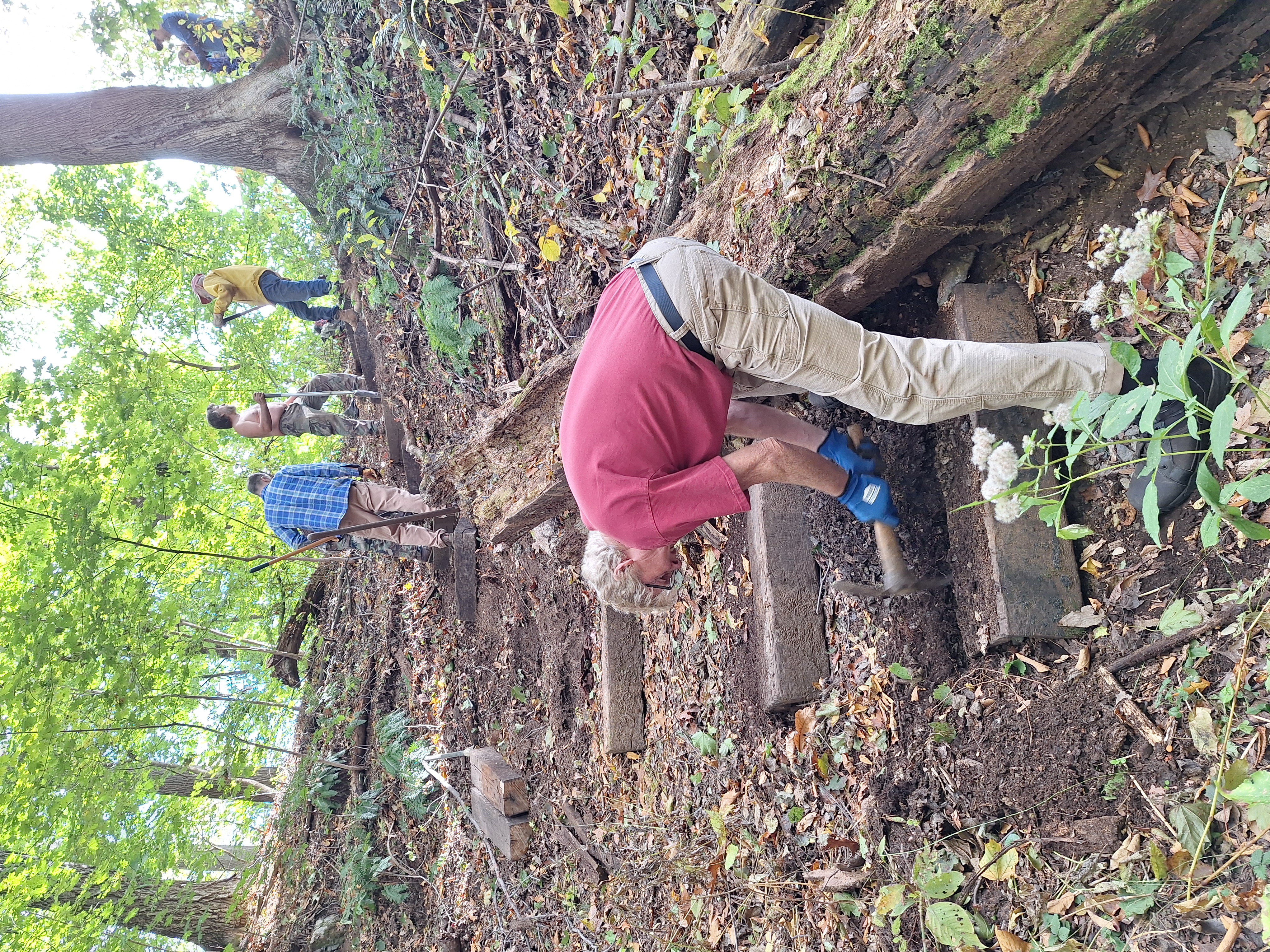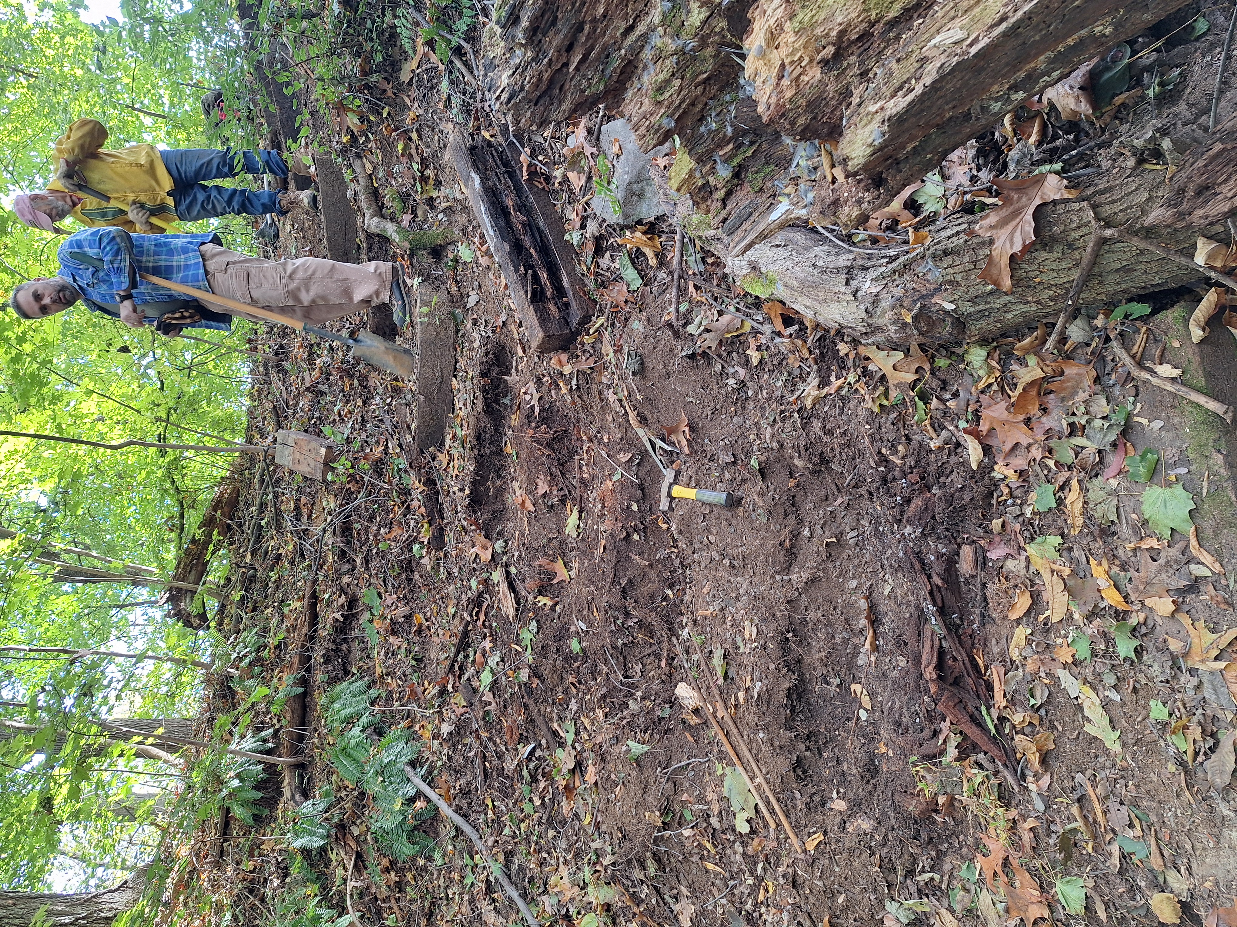 Creating a Safer Descent: We replaced old, decaying railroad ties to rebuild the stepped path leading down the hillside. These steps provide cavers with stable footing, reducing the risk of slips and protecting the slope from erosion caused by foot traffic.